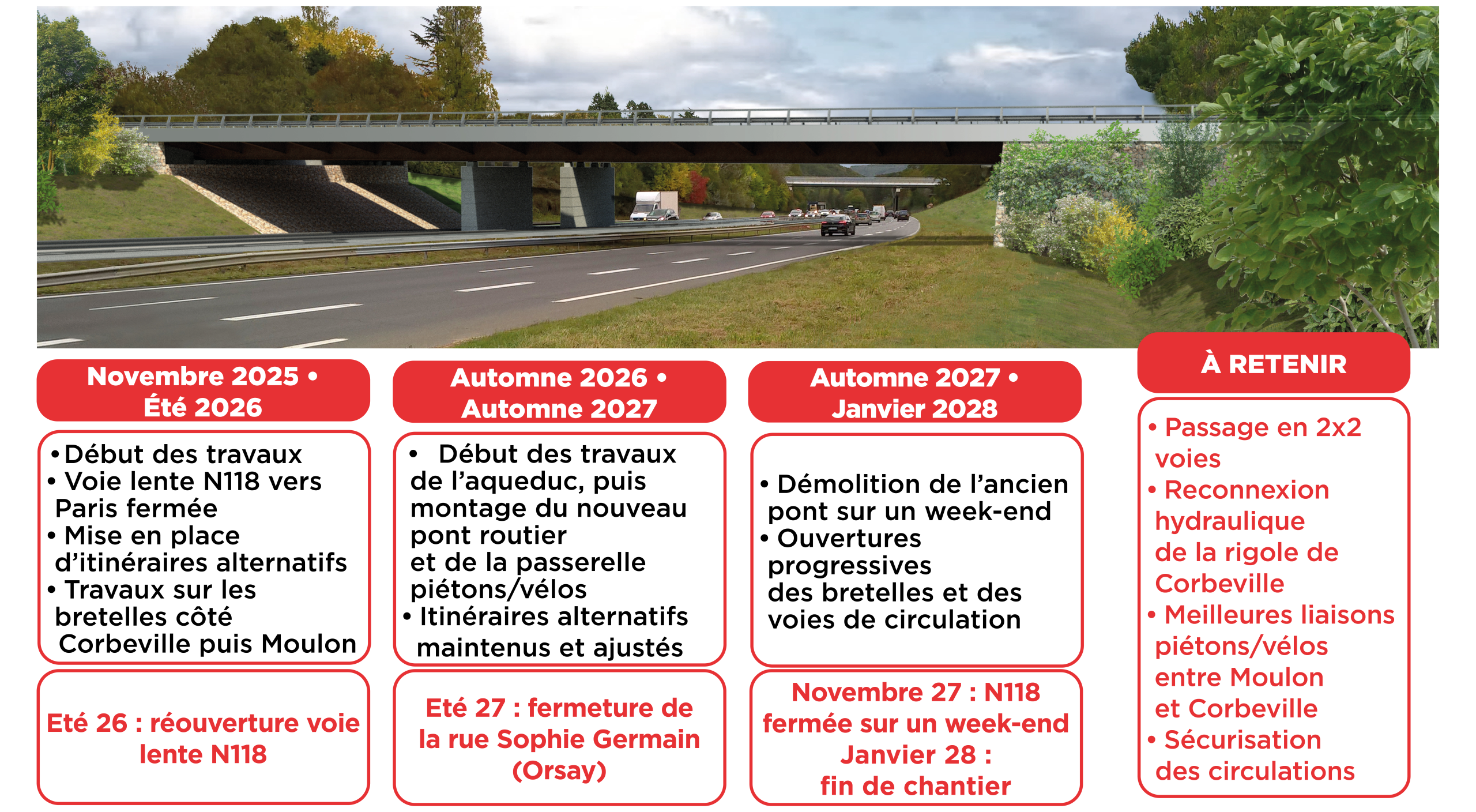 Pour accompagner les usagers tout au long du chantier, un dispositif de communication complet a été mis en place. Des panneaux d’information et une signalétique temporaire guideront les automobilistes, tandis qu’une page dédiée sur le site de l’EPA Paris-Saclay présentera les étapes clés et les actualités du chantier. Les réseaux sociaux diffuseront régulièrement des infographies, vidéos et messages pour informer en temps réel.